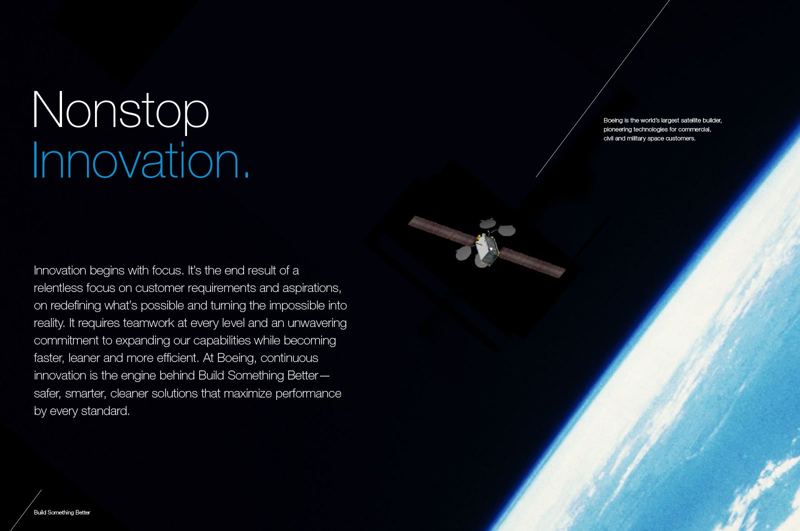 As design director, Damon established the look and feel, designed a narrative-based style guide, and the signature recruiting brochure used to communicate the Boeing brand and campaign story to new and potential Boeing employees.