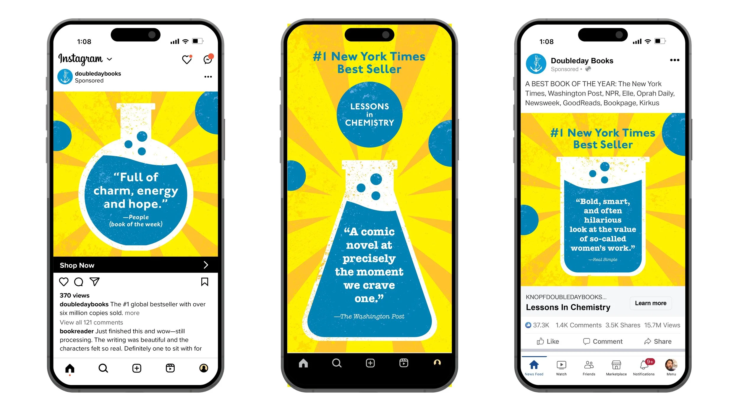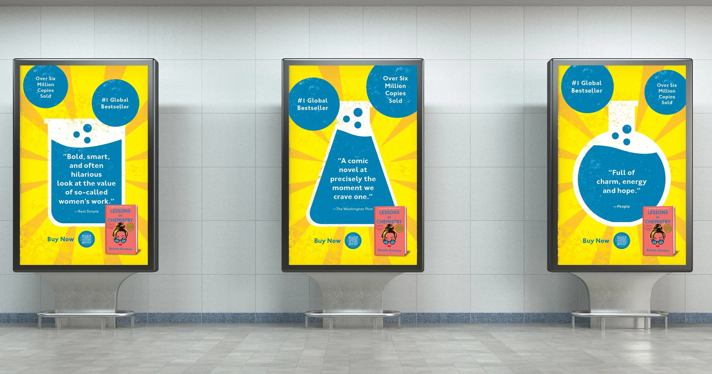 Positive Reactions, an campaign developed by NakagawaCo for The New York Times best-seller, Lessons in Chemistry, played on the idea of chemical reactions—tying directly into the book’s scientific themes—while showcasing real critical acclaim from top media outlets.